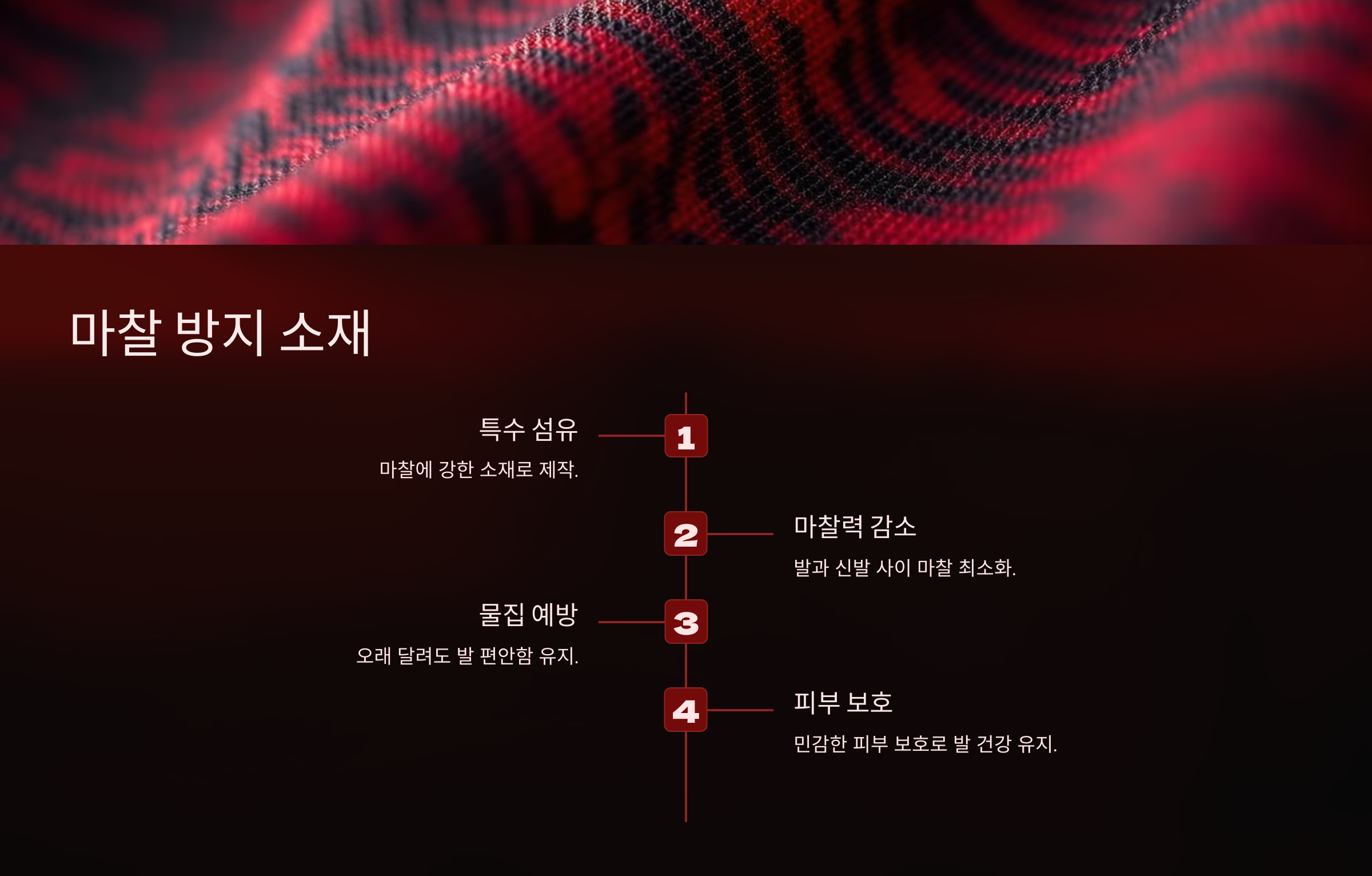 - 마찰력 감소: 피부와 양말, 양말과 신발 간의 마찰을 줄여 물집을 예방합니다.