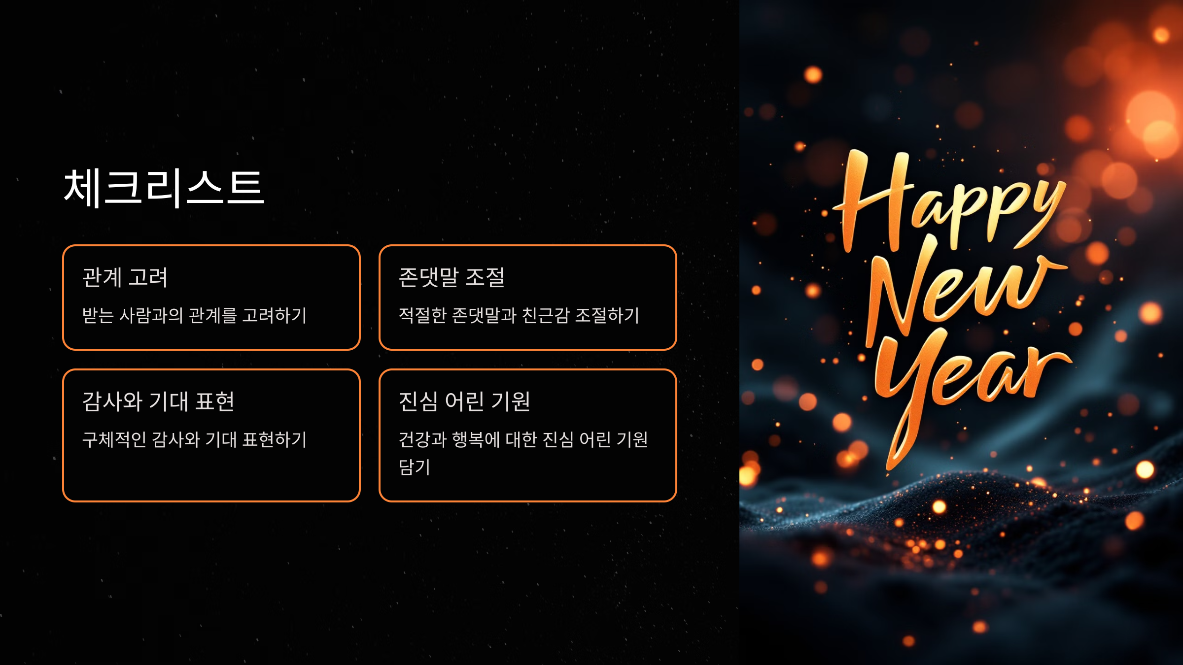- 형식적인 인사를 피하고 진심이 담긴 메시지 전달